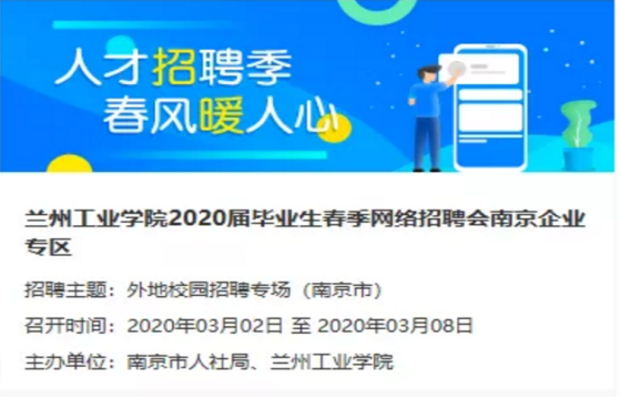 查找“兰州工业学院2020届毕业生春季网络招聘会南京企业专区”。(如下图)