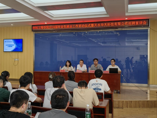6月17日下午14:30,材料工程学院在新阶梯201举办2024届毕业生就业工作启动仪式暨天水华天科技有限公司招聘宣讲会。天水华天科技股份有限公司校企合作办公室副主任吴永辉、专员张梓云、学院党委书记赵亚明、副书记副院长陈玉梅出席会议,一百余名2024届毕业生参加会议,陈玉梅主持会议。