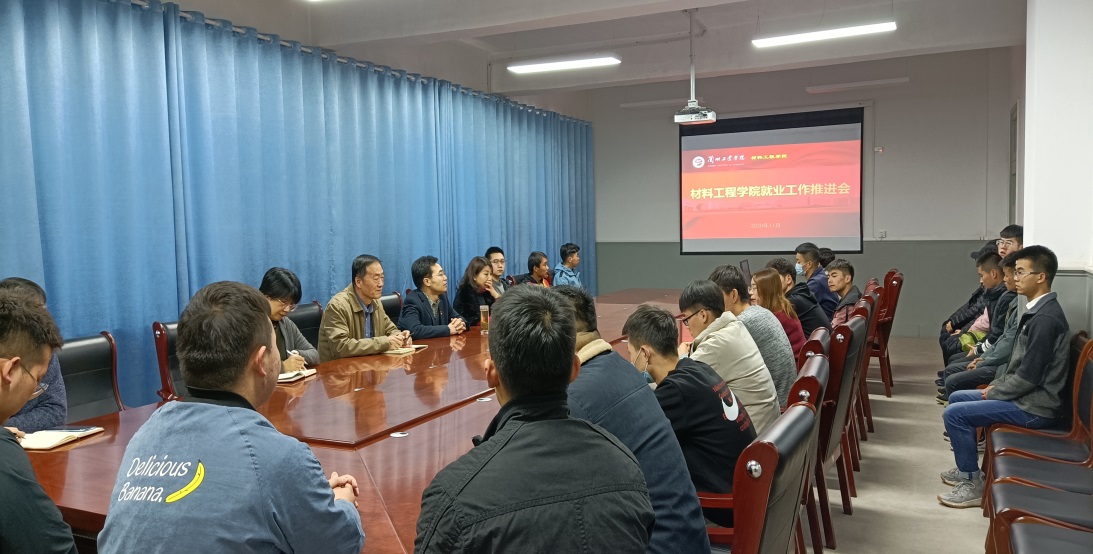 11月17日下午2:30,材料工程学院在学院会议室召开就业工作推进会,学院党政领导班子全体成员出席会议,毕业班辅导员、班主任以及目前仍未就业也未报名参加2021年硕士研究生考试的18名学生参加会议。