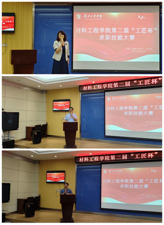 为不断提升和培养大学生求职技能,进一步提高求职竞争力,帮助毕业生提前感受真实求职现场,材料工程学院于2023年6月30日在新JT201举办第二届“工匠杯”求职技能大赛。学院党委副书记、副院长陈玉梅、副院长薛诚、办公室主任他进国、团委书记宋雪娇、20级辅导员唐睿分别担任大赛的评委,经过初赛选拔的10名选手参加了本次比赛。