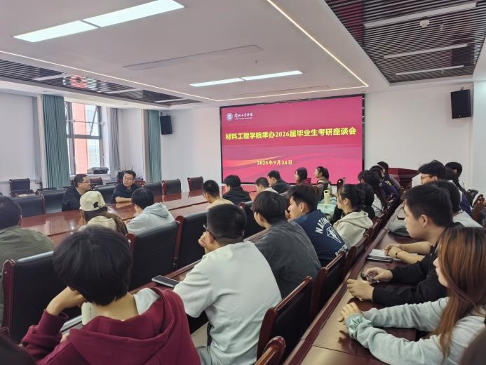 2025年9月24日,材料工程学院组织召开2026届毕业生考研座谈会及就业推进会。学院党委副书记、副院长龚成功,副院长薛诚,毕业班辅导员及26届毕业生参会。