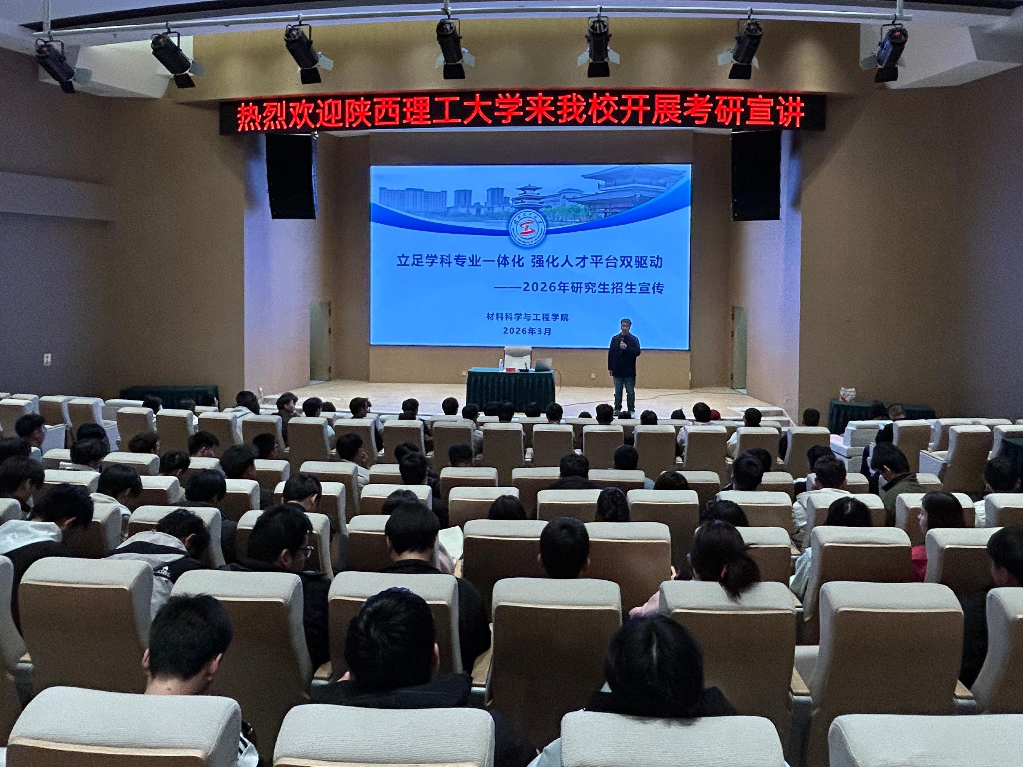 会上,炊鹏飞教授重点介绍了陕西理工大学材料科学与工程学院的学科概况、导师队伍、研究生培养、人才培养方案,并就考生关注的招录比例、就业前景、奖助政策等热点话题与同学们进行了交流,满足学生对研究生招生咨询的需求。