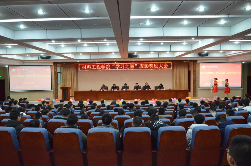 2019年12月26日晚,材料工程学院在图书馆学术报告厅举行 “学习之星”表彰奖励大会,副校长马江、团委书记王斌、学院班子全体成员参加表彰大会,并为学院2018-2019学年“学习之星”获得者颁奖,会议由学院党委书记罗柏林主持。