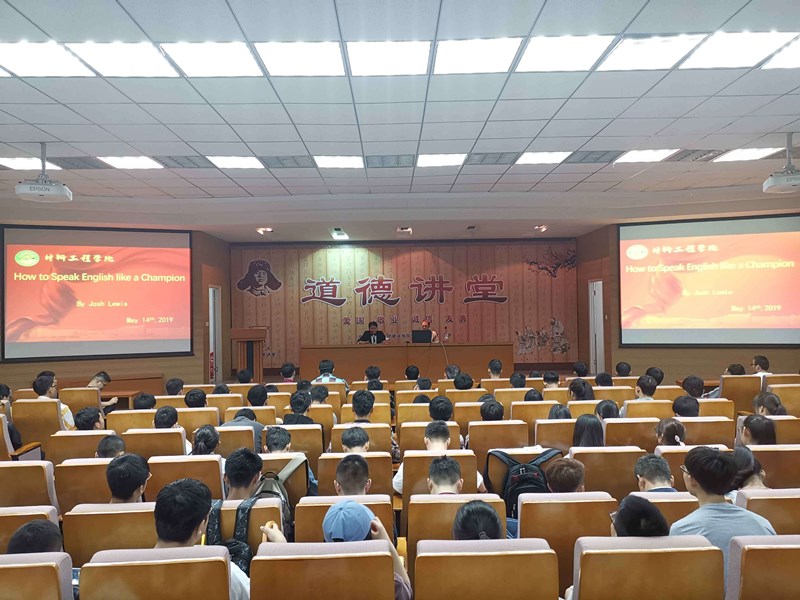 “How to Speak English like a Champion”的学术讲座,学院18级全体学生聆听了讲