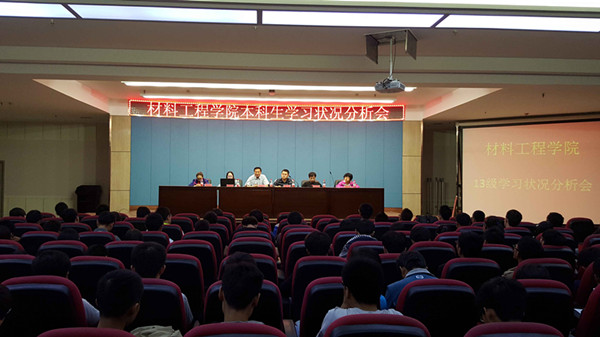 为了加强学风建设,9月17日,材料工程学院召开2013级、2014级本科学生学习状况分析会。学院党总支书记韩国才、副院长贾魁、全体辅导员以及400余名本科生参加了会议。 分析会上,辅导员郭峰、武明在对2013级、2014级本科生上学期学习、考试状况调研的基础上对一学期来专业课、基础课成绩、英语四级、计算机二级、职业技能资格证通过率、挂课率等情况进行了分析总结,并提出了相应的学习建议。 韩国才希望各位同学要明确学习目标,正视学习差距,科学规划自己的大学生涯,增强学习的主动性和积极性,成为“有理想、有信心、会学习、会竞争”的合格大学生;各本科班级要进行学习成绩比较分析,自主学习、科学管理,营造一种“比、学、赶、超”的学习氛围。