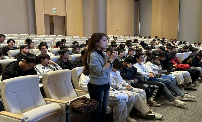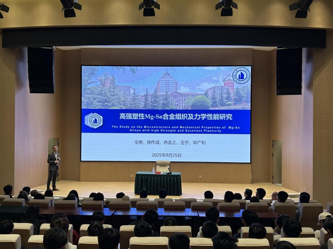 在专业分享环节,毕教授聚焦其研究方向—高强度塑形Mg-Sn合金组织及力学性能研究,从研究背景、核心技术、应用价值及团队成果等方面进行深度讲解,既展现了该领域的前沿动态,也为学子们提供了专业研究的全新视角。