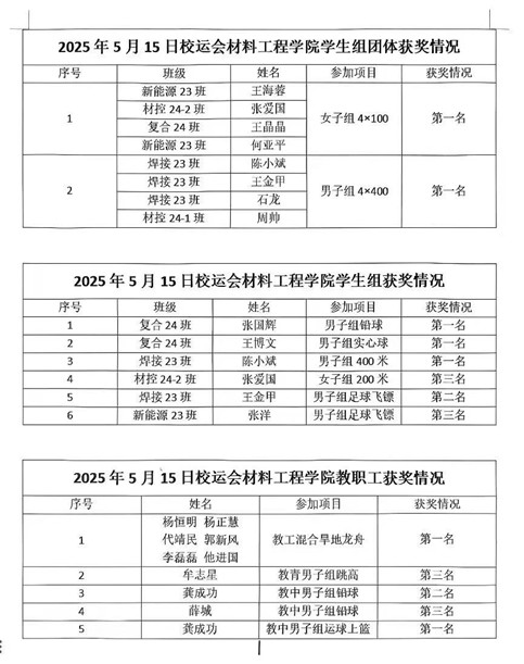 2025年兰州工业学院运动会已完成赛程过半,材料工程学院运动健儿们以顽强拼搏的姿态为我们带来了一场场热血沸腾的竞技盛宴,多项赛事成绩亮眼,部分纪录被成功刷新。