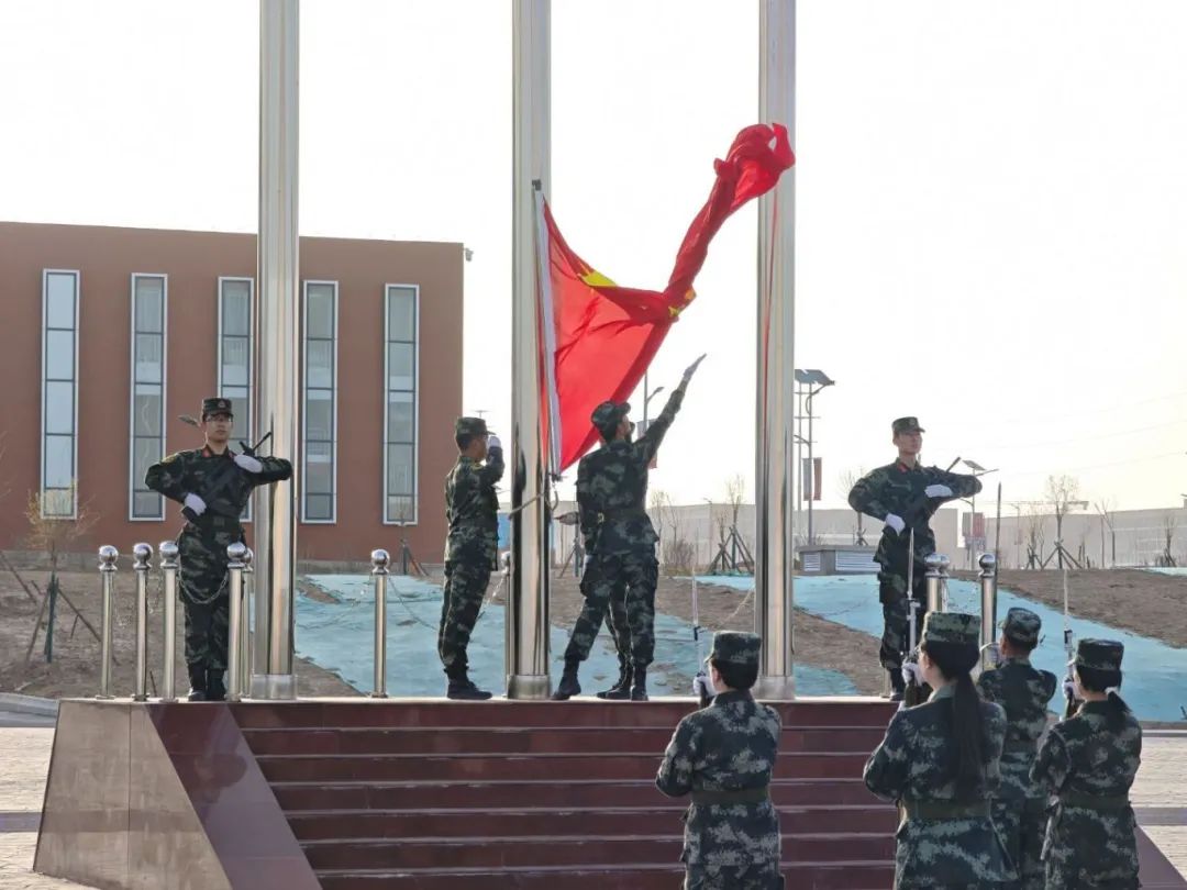 7点50分,伴随着雄壮的国歌声,鲜艳的五星红旗冉冉升起,全场师生肃立,向国旗行注目礼,表达对祖国的无限热爱与崇高敬意。