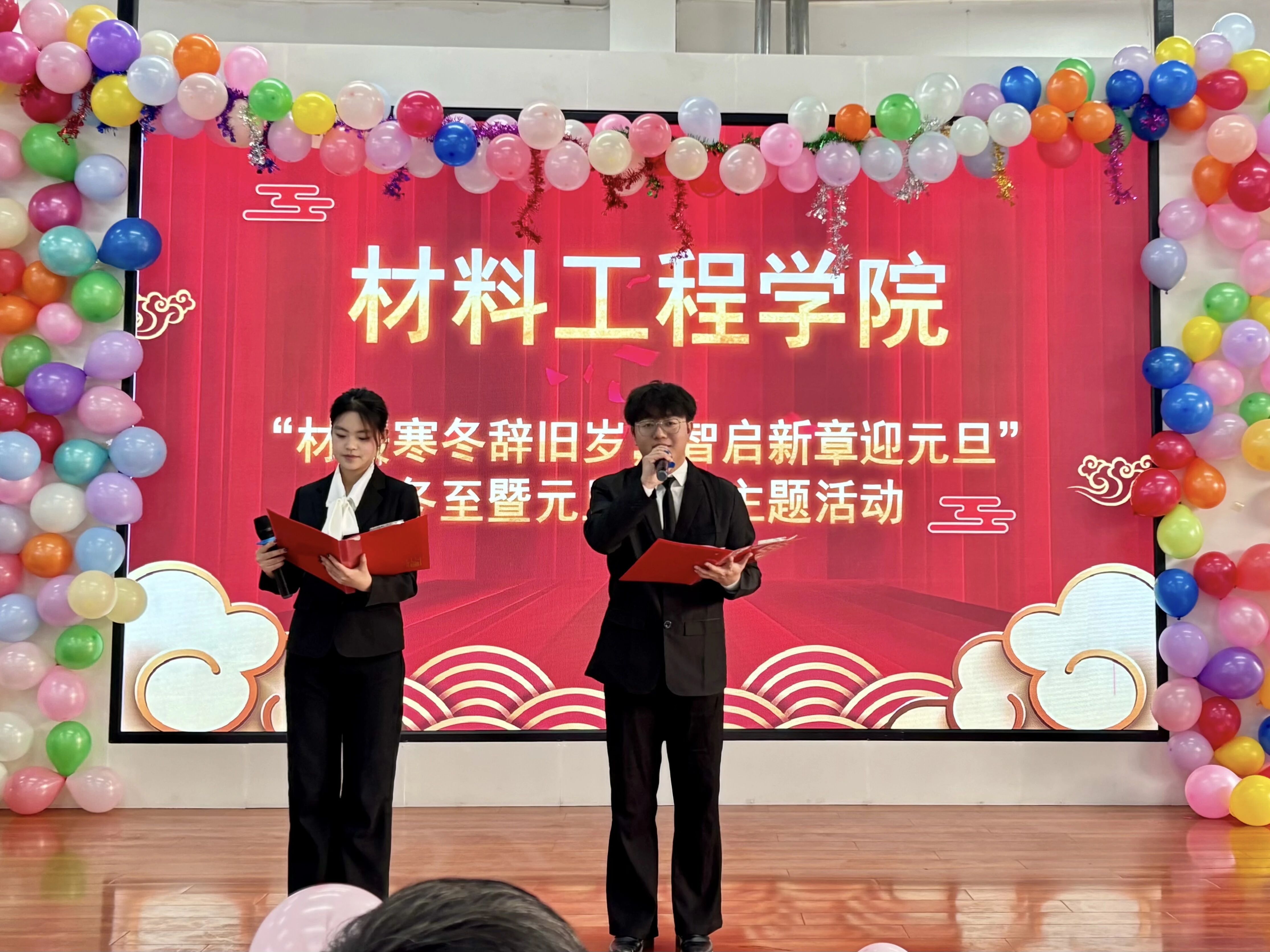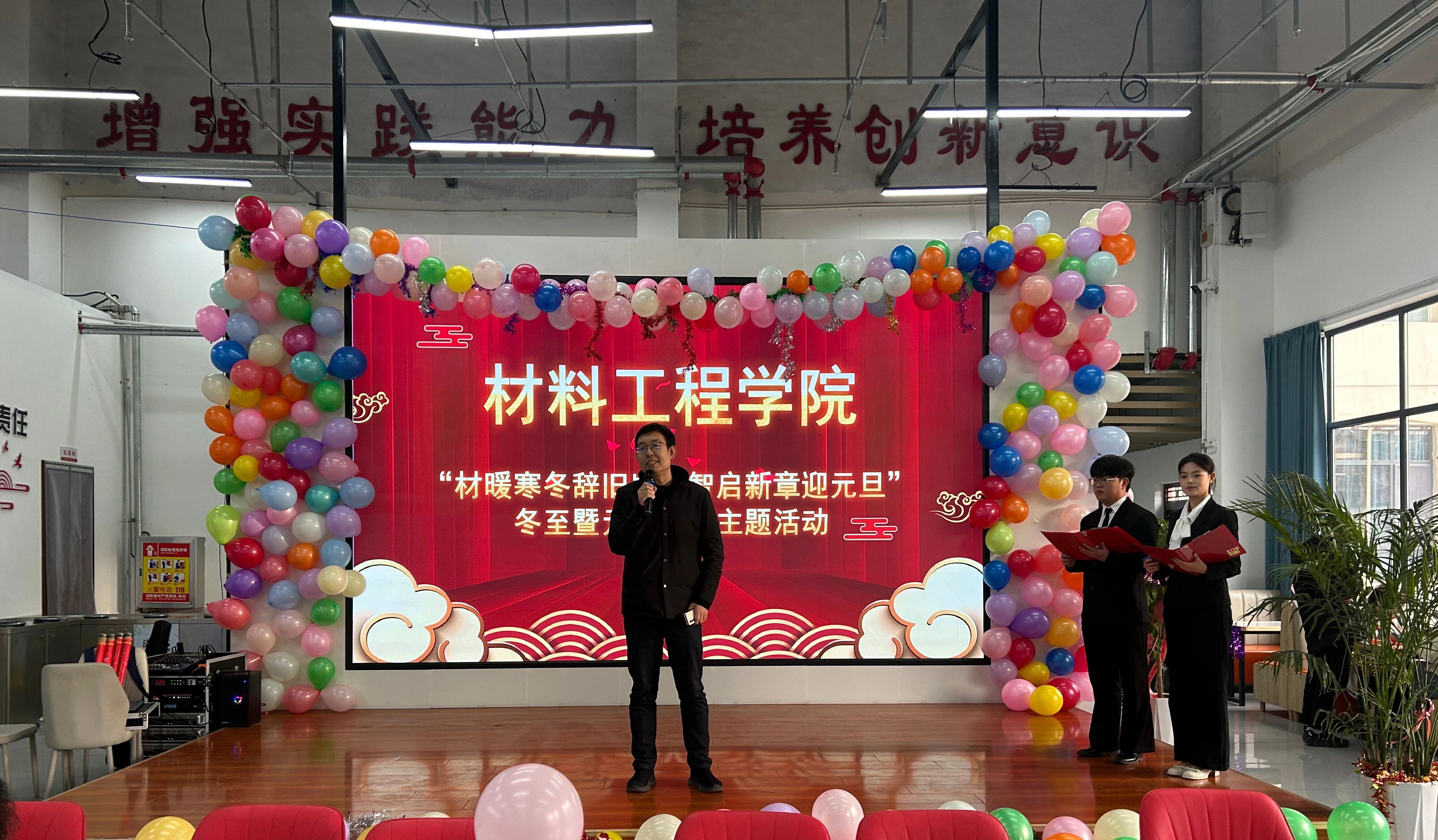 12月19日,兰州工业学院材料工程学院在南校区金工食堂开展“材暖寒冬辞旧岁,智启新章迎元旦”冬至暨元旦双节主题活动。学院党委副书记、副院长龚成功、学院团委书记代靖民、辅导员王小丽、学生会全体成员及25级班级代表齐聚一堂,共赴这场暖冬盛会。