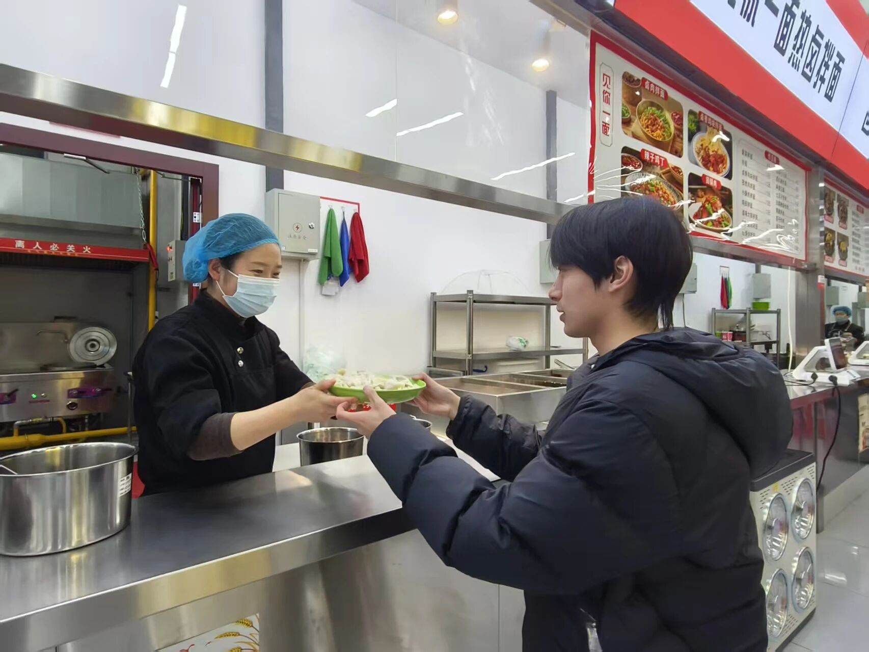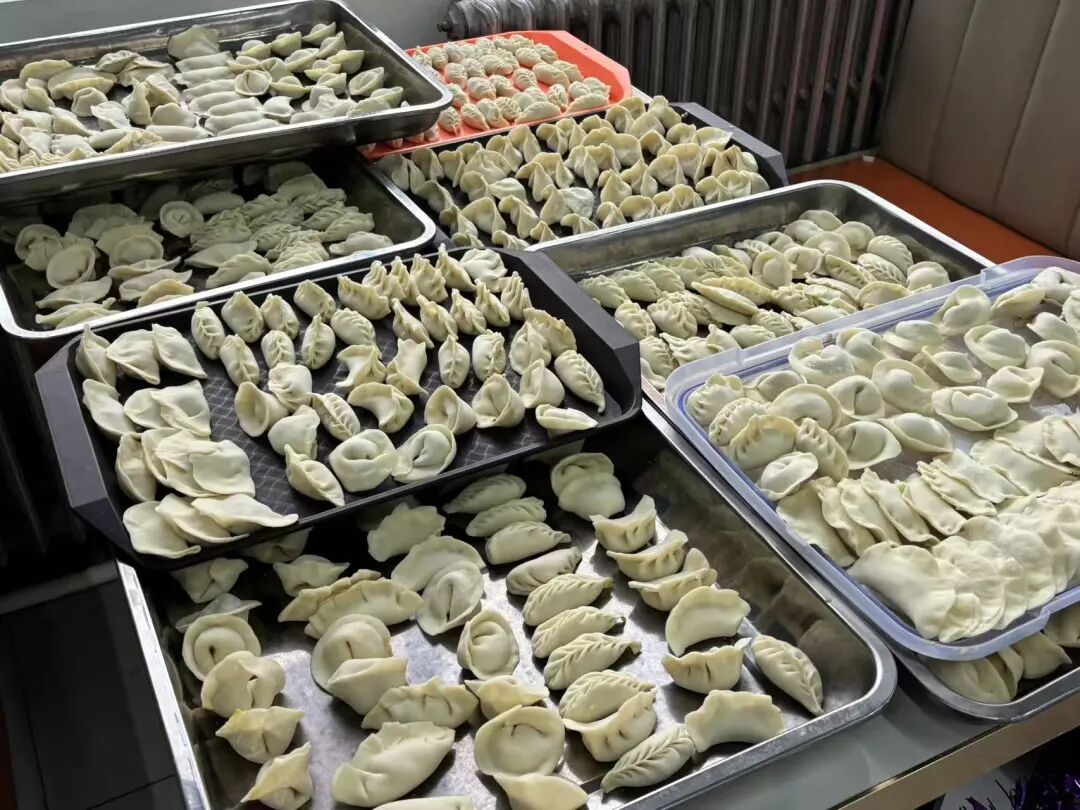食堂档口的工作人员也收到了学生送上的饺子,一份份热气腾腾的饺子,让冬日的温暖在彼此间传递。