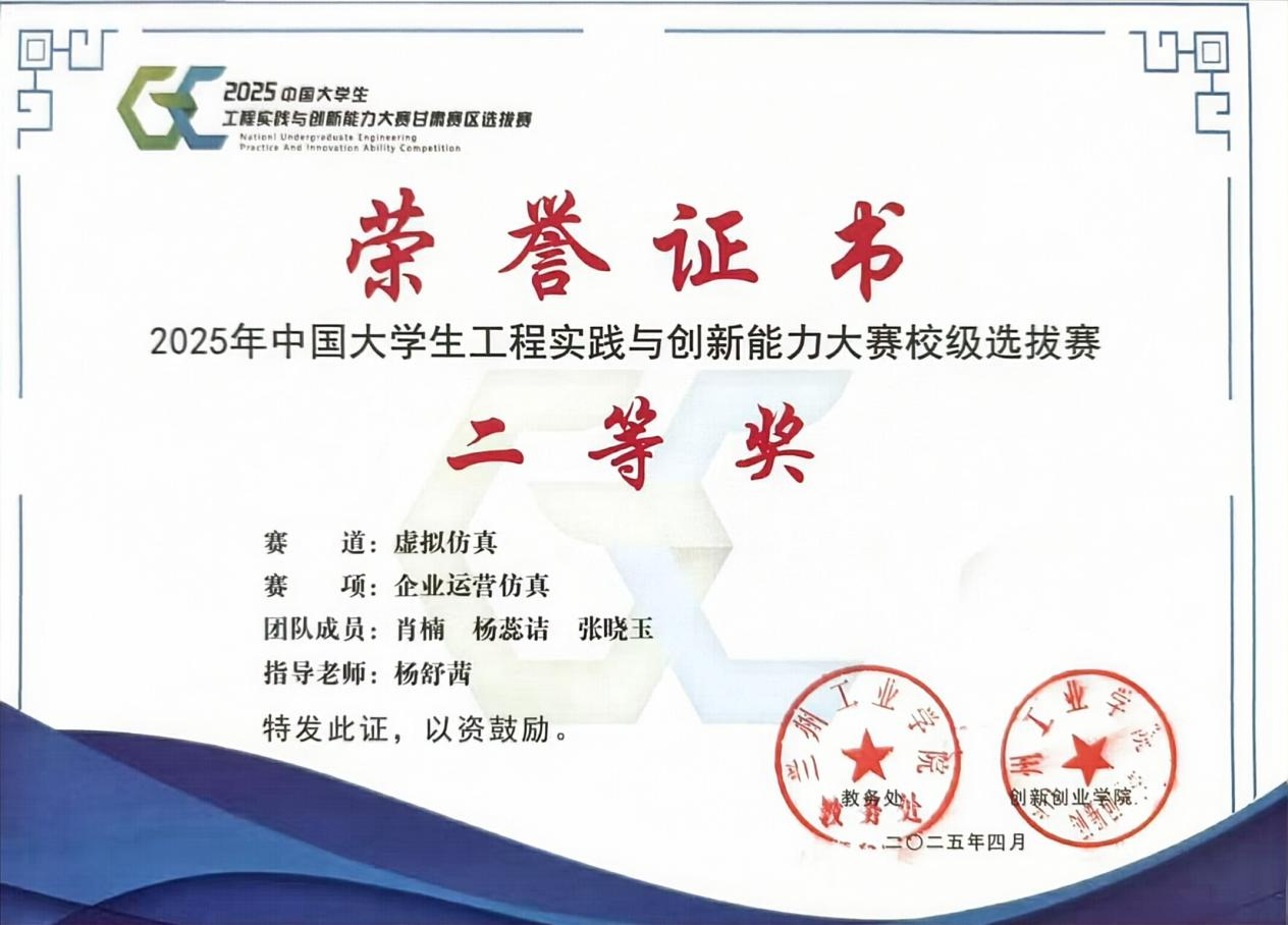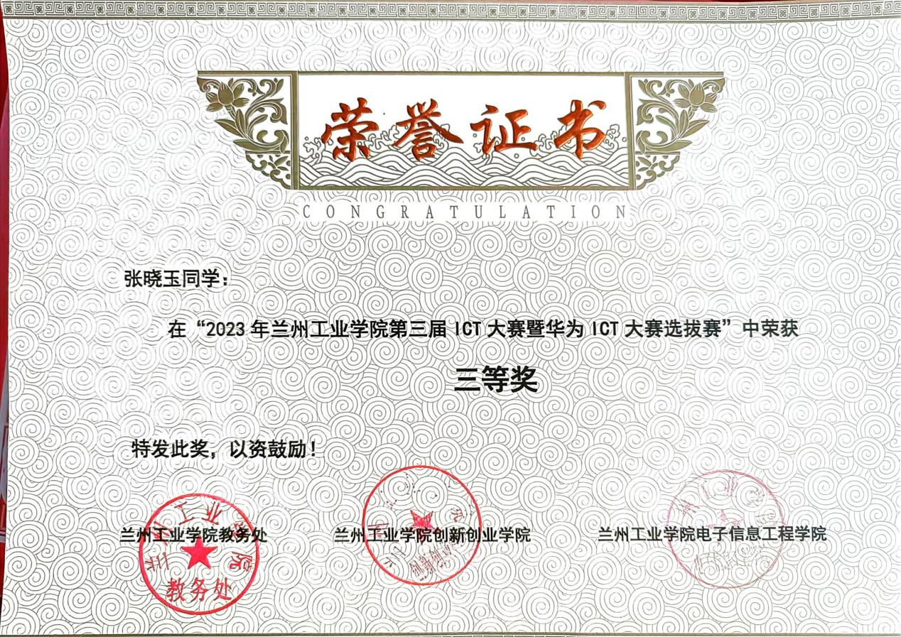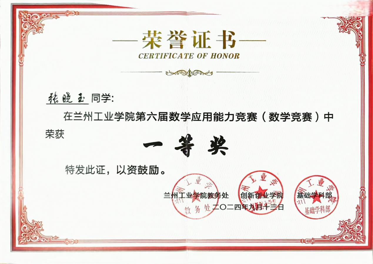 张晓玉:女,21岁,汉族,中共预备党员,山东省聊城人,材料工程学院材料成型及控制工程专业22级1班学生。荣获2023-2024学年国家奖学金、2022-2023学年国家励志奖学金、第十五届周培源力学竞赛国家级优秀奖、2024中国创新方法大赛(甘肃赛区)二等奖、大学生创新创业训练计划项目国家级立项一项。被授予“优秀大学生志愿者”、甘肃省“三好学生”、兰州工业学院“三好学生”、“优秀共青团员”等称号。持有计算机二级、TRIZ一级、红十字救护员等技能证书。