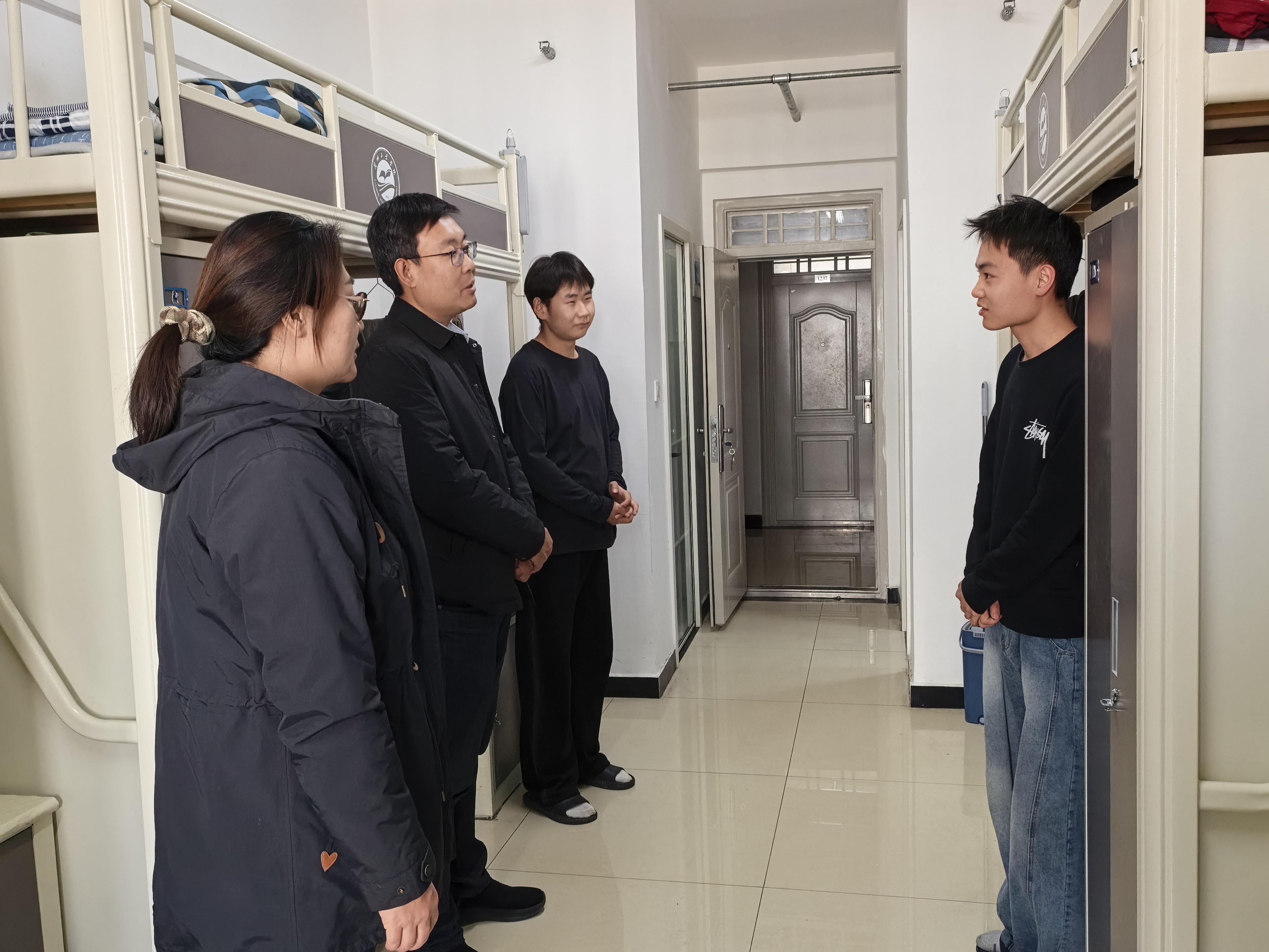 走访过程中,老师们以查寝、谈心、慰问等多种形式,与同学们亲切交流,细致了解大家的学习生活、住宿环境、饮食保障及思想动态,耐心倾听诉求,认真解答疑问,叮嘱大家合理安排作息与注意自身安全。