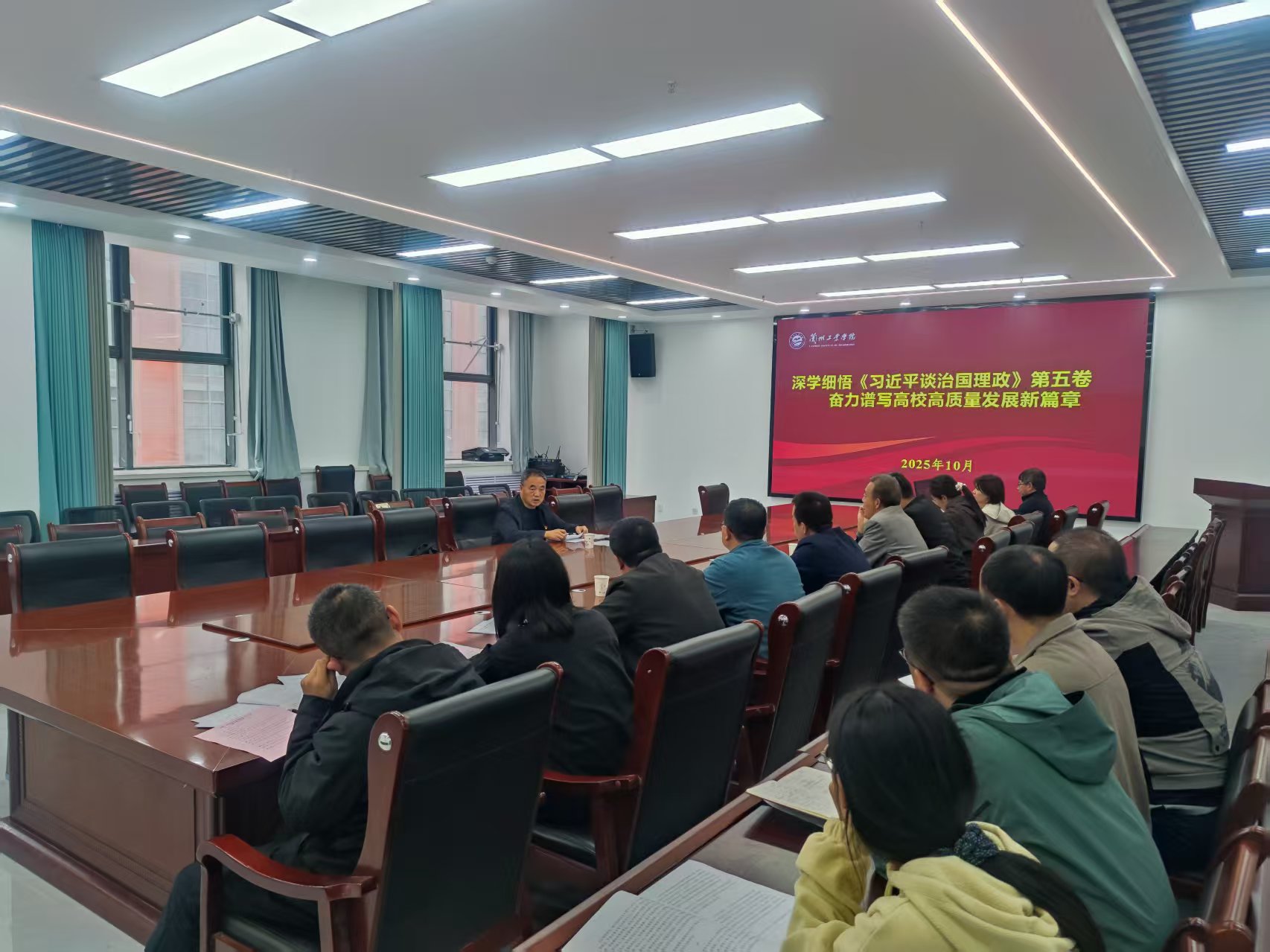 马宏锋以“深学细悟《习近平谈治国理政》第五卷 奋力谱写高校高质量发展新篇章”为题,从强化理论武装、筑牢思想根基,聚焦高质量发展、提升办学水平,坚持以人民为中心、服务师生发展,加强文化传承创新、培育时代新人,坚持党的领导、加强自身建设五个方面向学院全体党员教师进行了深入解读。
