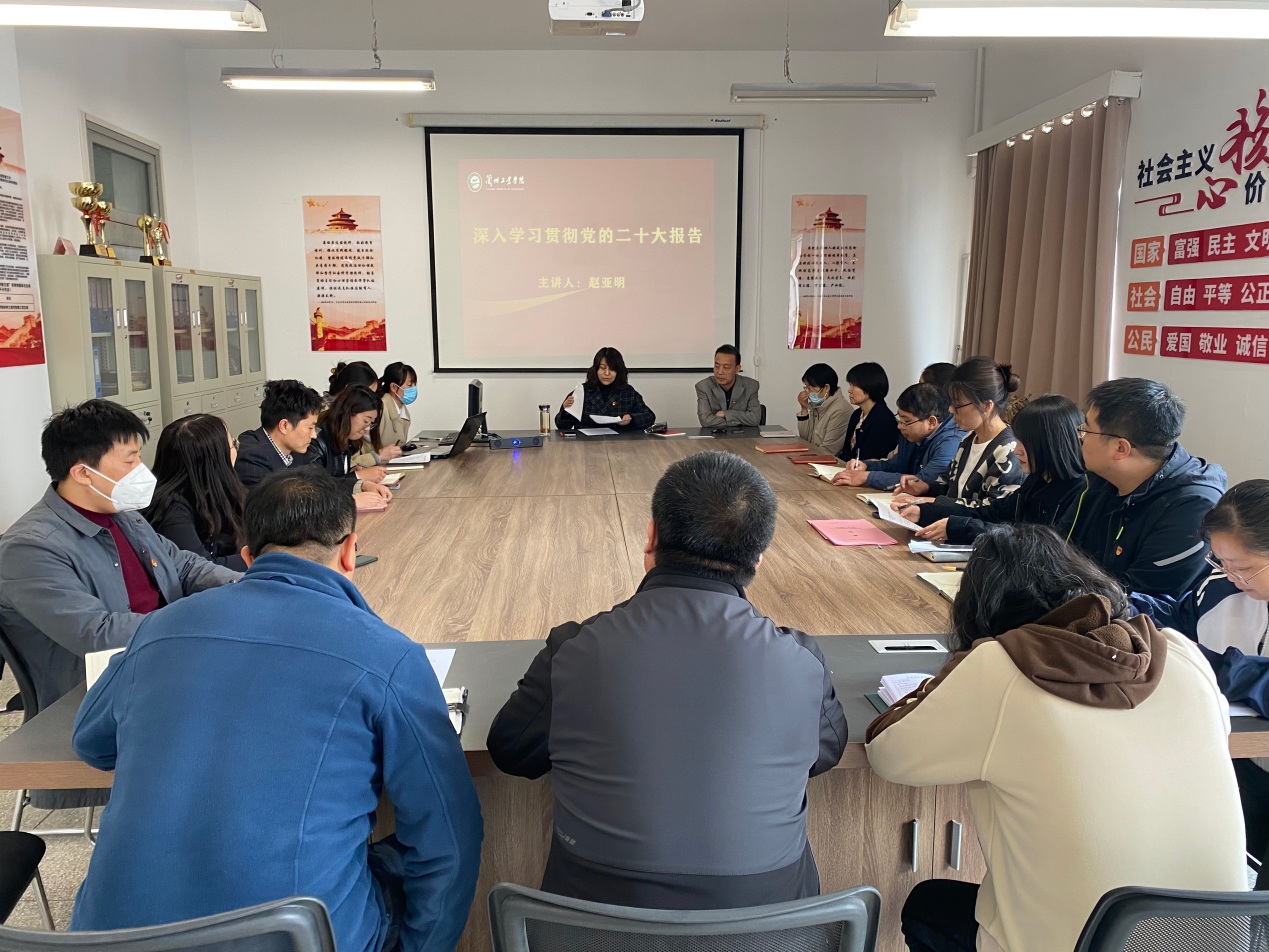 根据材料工程学院学习贯彻习近平新时代中国特色社会主义思想主题教育工作安排,5月23日,我院党委书记赵亚明讲了《深入学习贯彻党的二十大报告》的专题党课,学院全体教师参会。