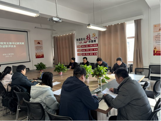 2023年12月19日下午,材料工程学院党委召开会议,听取了所属6个支部书记的述职报告,会议由学院党委副书记副院长陈玉梅主持。院长张振宇、副院长薛诚、学院党委委员及各支部书记参加了会议。