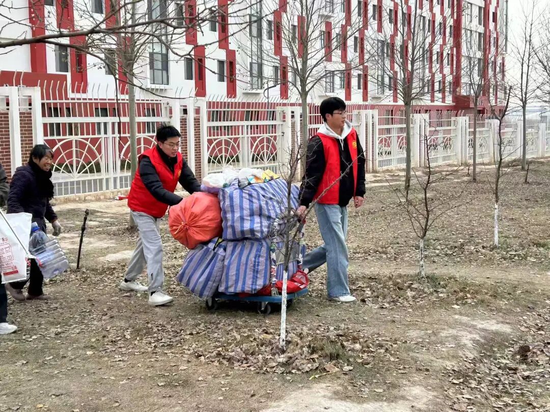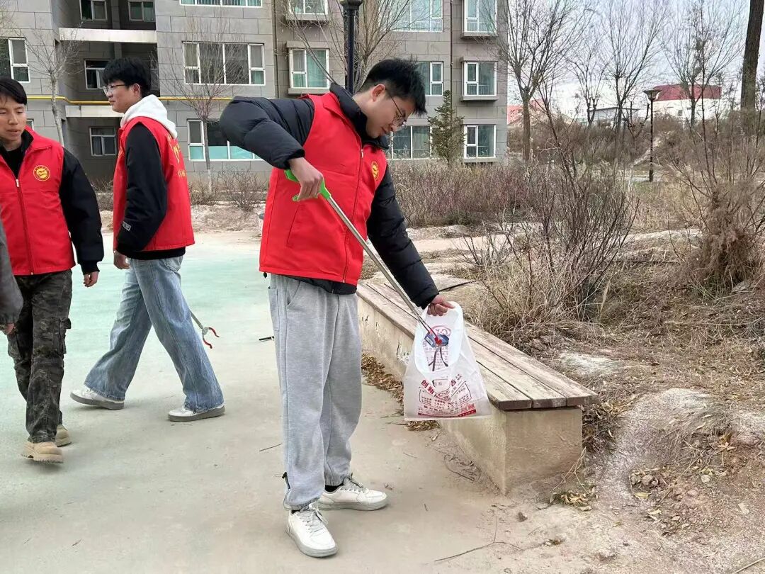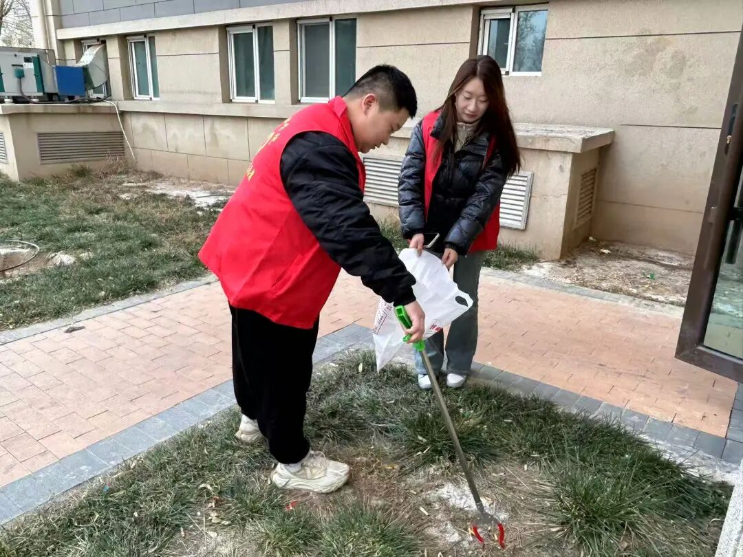 活动现场,学院党委充分发挥党建引领作用,构建“党员带头、团员紧跟、骨干示范”的工作格局。师生党员冲锋在前,带领团学骨干分工协作、默契配合:有的手持扫帚、铁铲清理社区公共区域的生活垃圾、落叶杂草,有的细致擦拭宣传栏、健身器材等公共设施,有的重点整治墙角、绿化带等卫生死角,全力清除环境“顽疾”。志愿者们不怕脏、不怕累,以饱满的热情和务实的作风,让社区及周边环境焕然一新,赢得社区工作人员和居民的一致好评。
