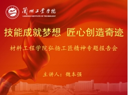 习近平总书记在党的十九大报告中强调,要建设知识型、技能型、创新型劳动者大军,弘扬劳模精神和工匠精神,营造劳动光荣的社会风尚和精益求精的敬业风气。为全面贯彻落实中共中央、国务院《关于全面加强新时代大中小学劳动教育的意见》,引导学生崇尚劳动、尊重劳动,树立良好的劳动观念,学习时代楷模,弘扬工匠精神,5月25日,材料工程学院邀请兰石重装炼化公司焊一车间主任、“金城工匠”和甘肃省劳动模范等荣誉称号获得者魏本强在图书馆学术报告厅为全体师生党员、入党积极分子及大一新生做“技能成就梦想,匠心创造奇迹”主题报告。报告会由学院院长韩国才主持。