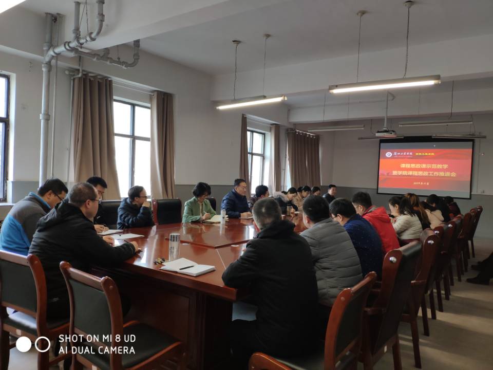 为深入贯彻党的十九大精神,进一步落实《兰州工业学院"课程思政"实施意见》。深掘本科教学课程中的思政内涵,推进思想政治工作贯穿本科教育教学全过程。11月19日下午,材料工程学院在学院会议室召开了材料工程学院课程思政工作推进会。罗柏林书记指出,课程思政工作是我们二级学院的意识形态工作重点,全院教师要利用好课堂这个渠道,把思政工作落到实处。教师在坚持“立德树人”的过程中要牢牢把握“德育”这个关键点,为祖国培养德智体美劳的新时代好青年。