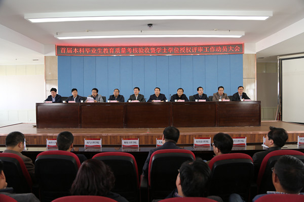 4月12日下午,学校在第一教学楼八楼会议中心隆重召开首届本科生教育质量考核验收暨申请增列学士学位授权评审工作动员大会。校党委书记高永新,党委副书记、副校长俞子泓,副校长冯彪,纪委书记廉志端,副校长马铁信、李贵山,总会计师王多兴,校长助理雷在福出席会议。校长王华栋做了重要讲话,会议由副校长魏军主持。 王华栋首先分析了此次评估工作的重要意义。他指出,这次评估工作,是对学校本科办学水平和学位授予基本条件的达标考核,是促进学校内涵建设的有效措施,也是学校检验过去、评价现在、规划未来的一次难得机遇,对于全面提高本科教学水平和人才培养质量具有重大而深远的意义。王华栋从学习借鉴、科学制定人才培养方案;转变观念、进一步厘清发展思路;科学谋划、扎实推进本科专业建设;做好本科教学,切实提高人才培养质量;成立机构,启动迎接评估工作等5个方面,全面回顾了学校为迎接评估所开展的前期准备工作,并充分肯定了各单位、各部门在评估启动、自评阶段、自评整改等阶段所作的大量扎实有效的准备工作。 王华栋对全面推进评估冲刺阶段的工作做了详细安排,并对做好迎评工作提出了三点要求,一是要落实“一把手”负责制,勇于担当,真抓实干。二是要充分调动广大师生的积极性,全员参与,积极履责。三是要树立全局意识,通力协作,各尽其责。王华栋最后强调指出,现在距离专家进校评估还有9天时间,进入了评估的最后阶段,时间紧、任务重,全校上下必须按照学校的统一安排部署,扎实做好各项迎评准备工作;要继续发扬工院人的顽强拼搏精神,以饱满的热情和高昂的斗志,以强烈的责任感和使命感投入到评估工作中去,确保我校评估工作顺利进行,为顺利通过此次评估工作,推动学校改革与发展做出新的更大的贡献! 魏军在总结会议时首先对专家进校的工作安排进行了说明,并强调指出,各单位、各部门要深入领会、准确把握王华栋校长讲话的重要内涵,以“只争朝夕,时不我待”的紧迫感和崇高的使命感,自觉投入到迎评工作中去,恪尽职守、努力工作,以积极、健康的心态迎接评估;各学院、各部门要抓紧最后时间进一步检查落实,要对各项准备工作再次进行全面的梳理检查、查漏补缺,做到精益求精,确保万无一失,不留任何漏洞;全校要加强日常管理,认真执行迎评纪律,以昂扬向上的精神面貌、优良的学风、严明的纪律、文明的修养,充分展示出工院人良好的素质和健康向上的精神风貌,力争评估工作取得优异成绩,为学校的转型发展打下良好基础。 (学校办公室/供稿 宣传部/摄影) |
